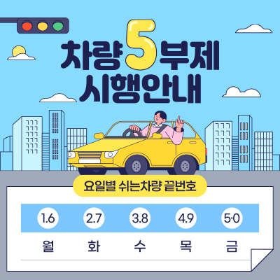 알림 NEW주차장 이용 차량 5부제(요일제) 실시 안내 2026.04.08