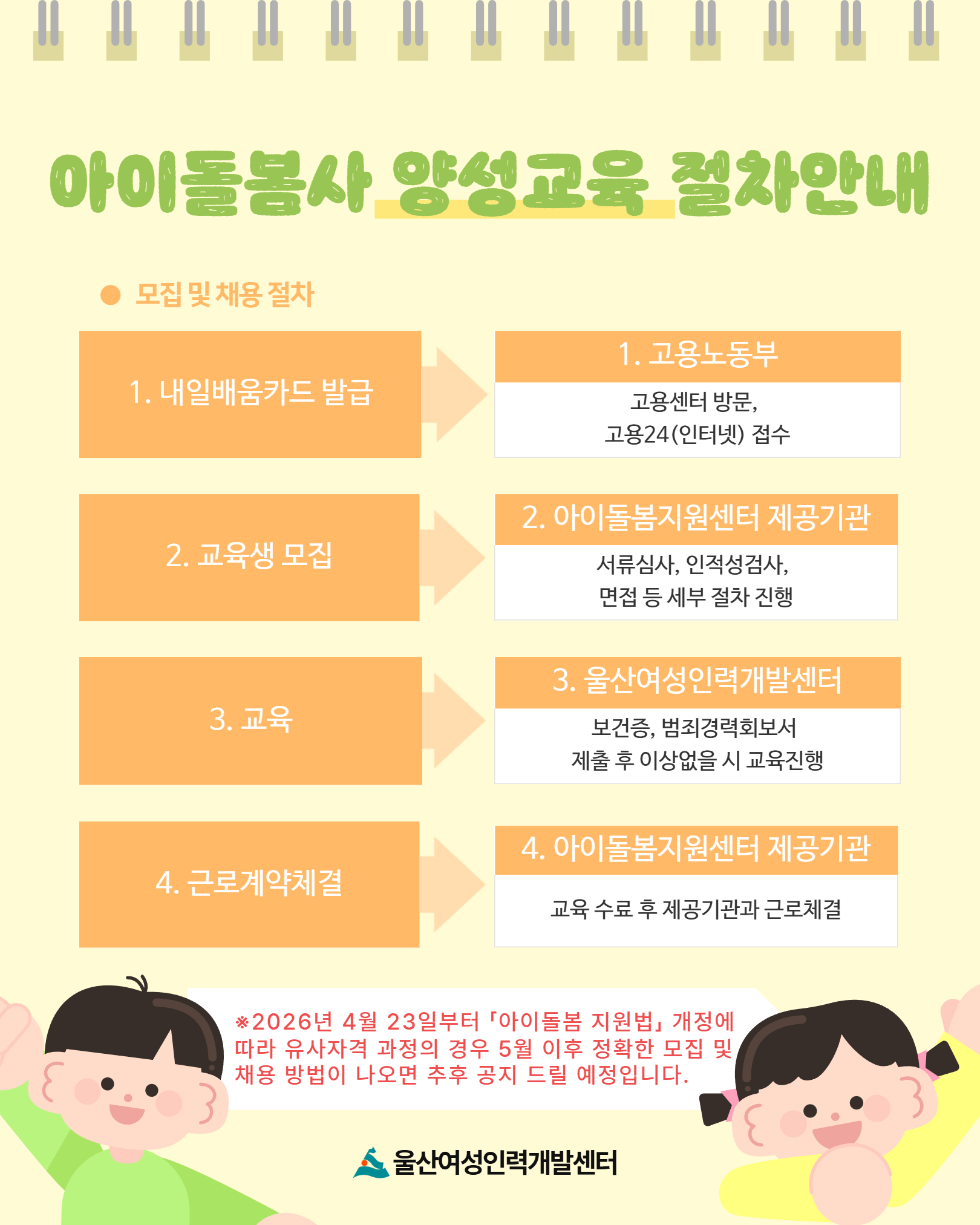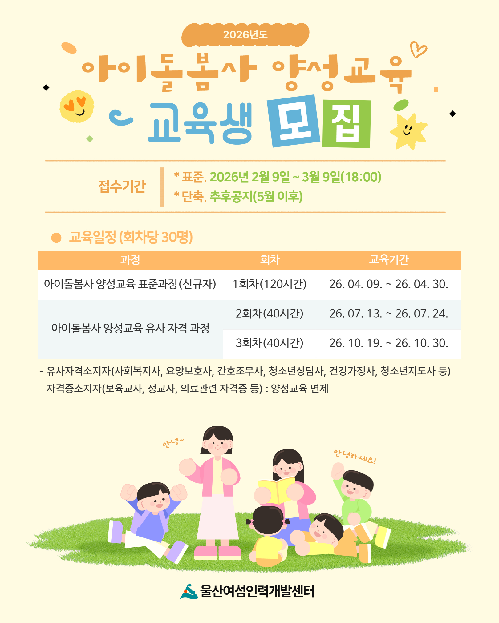 2026년도 아이돌봄사 양성교육 교육생 모집