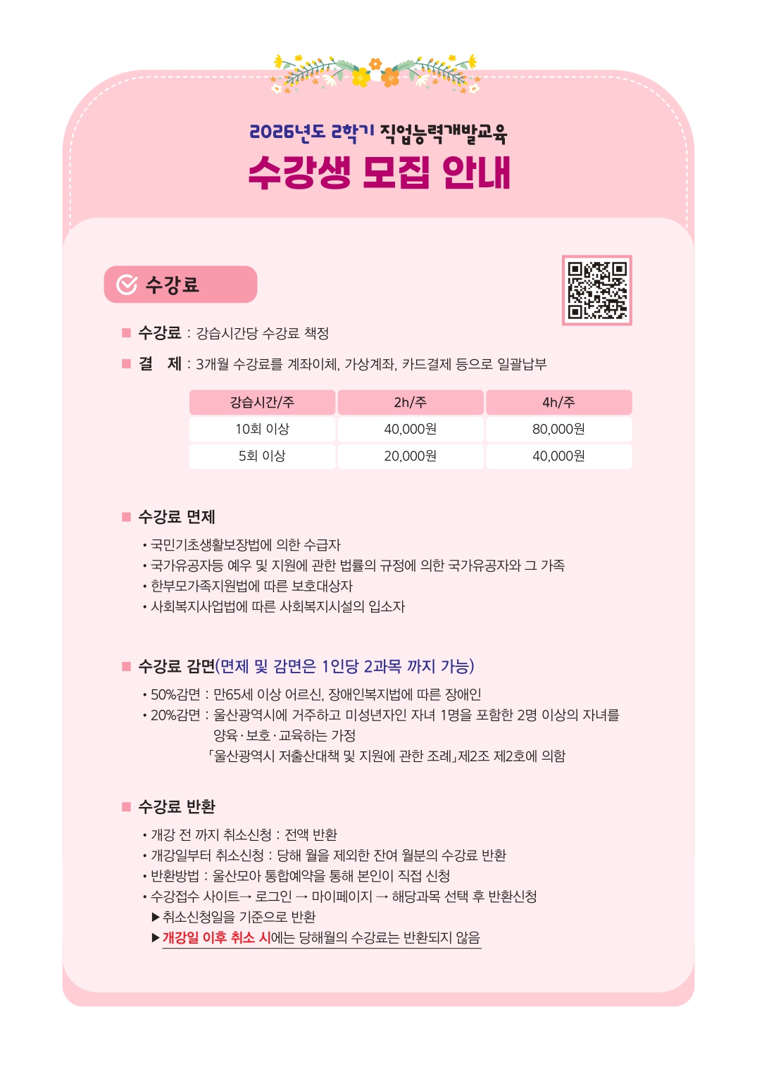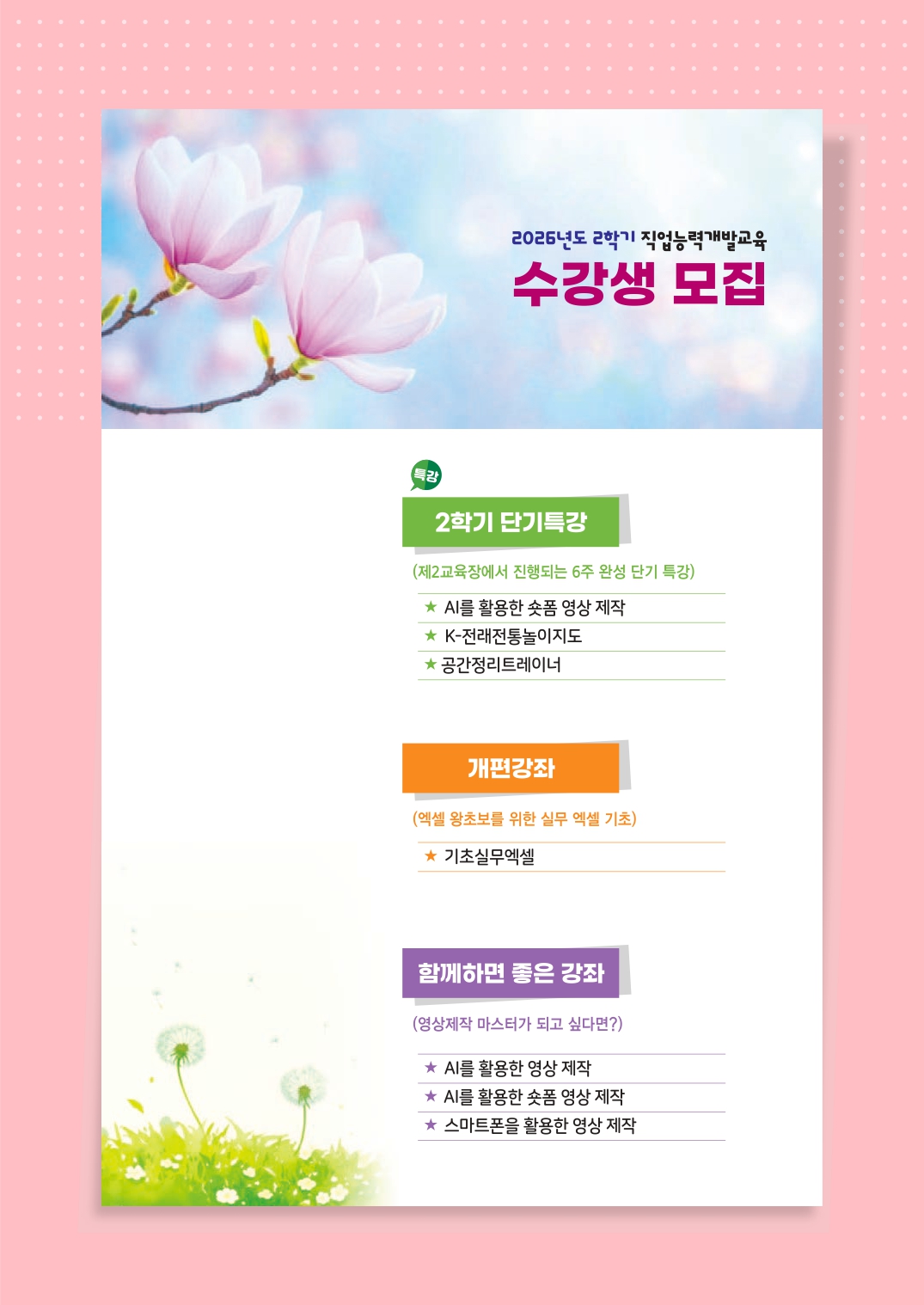 2026년도 2학기 직업능력개발교육 수강생 모집 안내